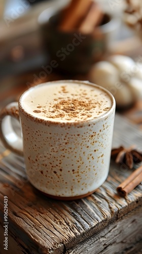 Cozy Chai Latte in Rustic Ceramic Cup on Wooden Table