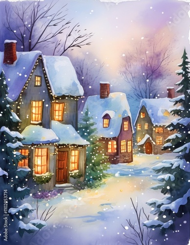 christmas, village, watercolor, cosy, snow, holiday, winter, festive, light, tree, house, night, warm, peaceful, serene, landscape, art, traditional, celebration, december, chilly, colourful, home, architecture, pine, frosty, snowy, cheerful, welcoming, magical, scene, glow, seasonal, tranquil, fireplace, chimney, family, gathering, quaint, picturesque, gloaming, wonderland, joy, nostalgia