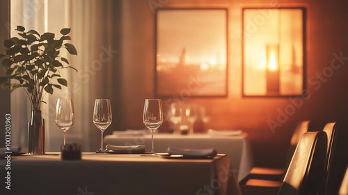 Cozy Dining Ambiance: Intimate Evening Setting with Wine Glasses and Decor
