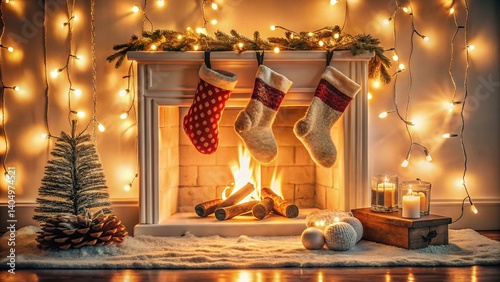 Cozy Fireplace Christmas Stockings Minimalist Photography