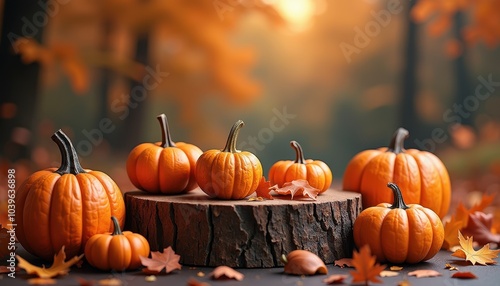 Cozy Halloween display podium with warm autumn vibes perfect for branding and packaging concepts with seasonal accents.