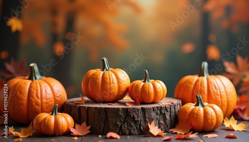 Cozy Halloween-themed podium featuring autumn colors perfect for a seasonal product showcase and branding ideas.