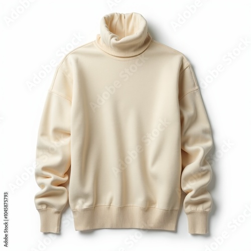 Cozy ivory turtleneck sweater on white background