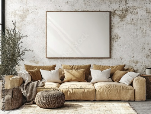 living room, sofa, beige, cushion, natural light, interior, comfort, furniture, design, home, decor, minimalistic, canvas, warm tones, contemporary, floor, apartment, luxury, lounge, art, background, frame, creative, empty, fashion, light, house, chair, mock-up, texture, simplicity, warmth, comfortable, decorating, classic, concept, room, stylish, home interior, modern, interior design, aesthetic, visual