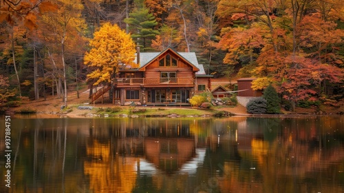 Cozy Log Cabin by the Lake in the Woods with Beautiful Water Reflection
