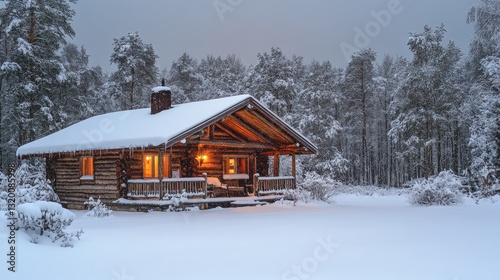 cabin, log, wood, winter, snow, forest, tree, wood, snowy, cold, ice, tranquil, peaceful, serene, quiet, cosy, warm, light, home, house, rustic, isolated, wilderness, landscape, nature, evening, dusk, gloaming, illumination, glow, fire, fireplace, comfortable, romantic, secluded, magical, picturesque, beautiful, scenic, stillness, wintery, frosted