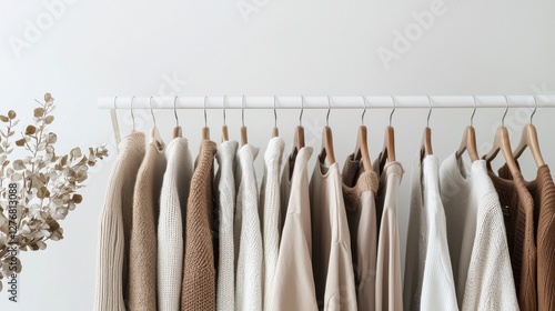 sweater, clothing, fashion, neutral, hanger, display, design, clothes rack, minimalist, texture, home, cosy, fabric, colours, beige, style, casual attire, simplicity, decor, soft, trend, aesthetic, background, clean, wooden, autumn, winter, seasonal, warmth, comfortable, closet, outfit, essential, monochrome, natural, arrangement, elegant, shopping, boutique, textile, modern style