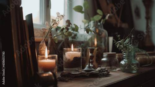 Cozy Relics and Candles on Table Top Keepsakes Generative AI Photo