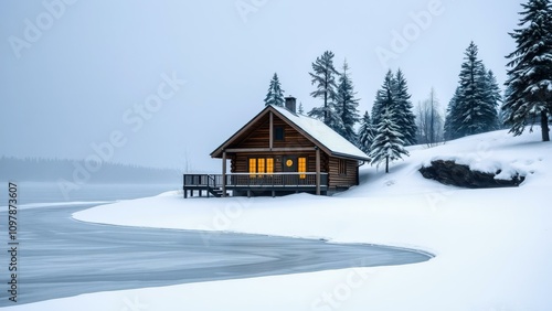 cabin, snowy, winter, forest, retreat, snow, mountain, wooden, chalet, hideaway, peaceful, serene, tranquil, white, cold, glacé, pine, tree, home, escape, vacation, holiday, season, nature, remote, quaint, rustic, comfort, warmth