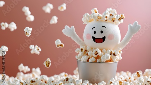 Cozy White Cup Filled with Popcorn Beside Adorable White Teddy Bear