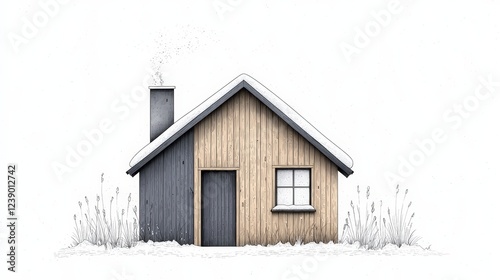 serene, calmness, warmth, quiet, solitude, harmony, residential, peaceful, smoke, aesthetic, vignetting, artistic, cosy, inviting, simple, charme, frost, rustic, foliage, craftsmanship, rural, minimalism, illustration, front view, home, chimney, house, cabin, bungalow, holiday, outdoors, snow, wood, beauty, nature, environment, landscape design, season, snow-covered, cold, architecture, countryside, landscape, winter, winter landscape