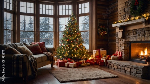 christmas, living, room, tree, fireplace, gift, winter, cosy, decoration, snow, holiday, comfort, light, evening, warmth, present, celebration, family, home, festive, joy, wood, interior, rug, window, glow, stocking, brown, green, red, atmosphere, traditional, seasonal, new, year, relaxation, gathering, cheerful, scene, nature, spirit, inviting, ambience