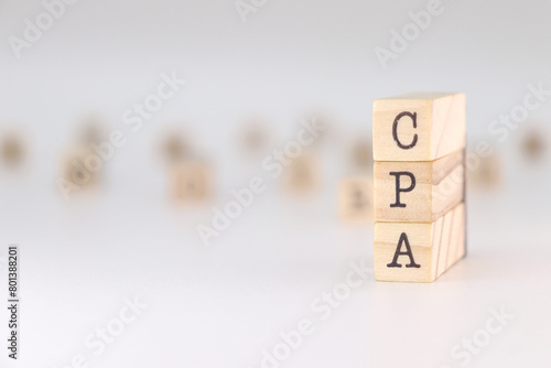 CPA acronym. Concept of Certified Public Accountant written on wooden cubes isolated on white background.