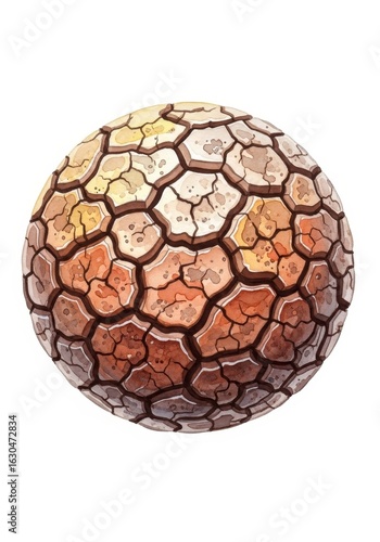Cracked Earth Sphere Illustration - A detailed illustration of a sphere with a cracked, earth-like surface. Brown, orange, and beige tones depict a dry, arid texture