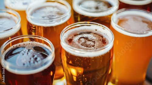 Craft beer tasting events with diverse brews, rich and inviting, Culinary, Warm tones, Photograph, Artisanal drinks