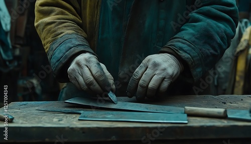 craftsman, knife, sharpening, workshop, tool, metal, hand, work, skilled, sharpened, detail, artisan, repair, precision, trade, blacksmith, industry, quality, steel, hand-made, equipment, manufacturing, workstation, toolshed, skill, expertise, hard, grit, care, concentration, dexterity, durability, craft, working man, metalwork, technique, sharp, cutting, labor, production, detailing, focused, serious, expert, sharpener
