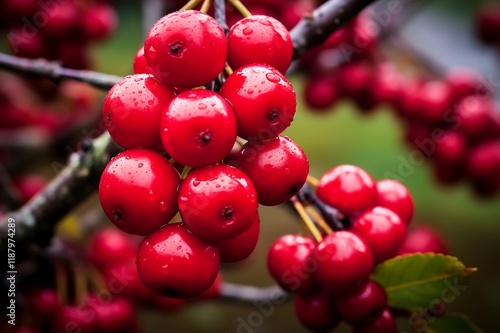 Cranberry on a tree in the orchard. Fresh Cranberry fruits