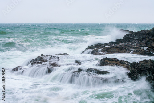 seascape, landscape, long exposure, sea, ocean, crashing waves, rock, wave, windy day, windy, exposure, blue, rough sea, swell