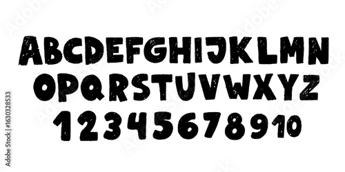 Crayon kids font, doodle funny playful alphabet. Hand drawn scribble kid typescript numbers. School wax crayon abc cute kindergarten handwriting playful letters, digits. Color pencil children font.