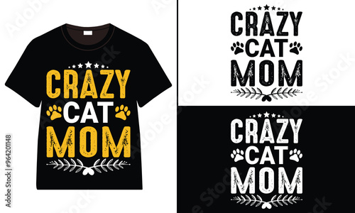 Crazy Cat Mom T-shirt design, cat typography t-shirt design, Cat day t shirt design, Cat SVG t shirt
