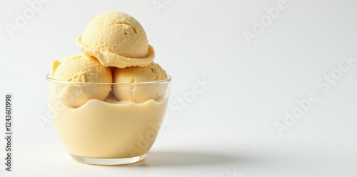 Creamy amaretto ice cream in a clear cup on white background, cup, dessert