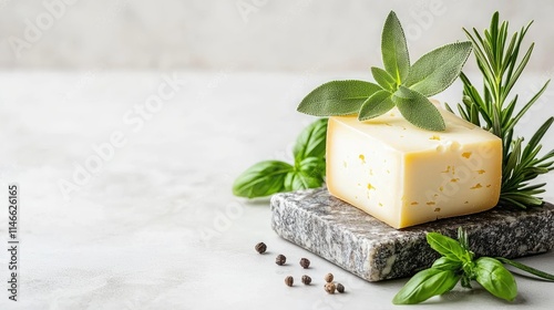 cheese, herb, peppercorn, marble, food, culinary, cookery, epicure, dairy, delicious, snack, ingredient, receipe, cooking, kitchen, fresh, healthy, tasty, organic, natural, rustic, background, texture, detail, block, wedge, sage, rosemary, basil, spice, favor, aroma, dinner, lunch, meal, plate, stone, white, green, grey, yellow