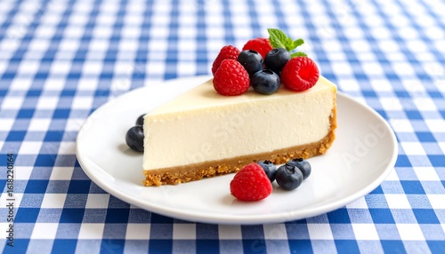 cheesecake, slice, berry, dessert, sweet, creamy, white, plate, tablecloth, fruit, delicious, bakery, deliciously, food, portion, treat, receipe, cake, classic, fresh, sweetness, texture, simple, light, homemade