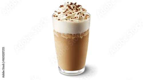 Creamy iced coffee with whipped cream and chocolate sprinkles