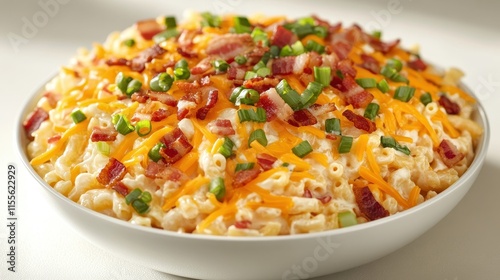 macaroni, salad, cheese, bacon, creamy, dish, side, food, fresh, ingredient, meal, cook, preparation, culinary, tasty, savoury, delicious, green onion, garnish, bowl, comfort, picnic, homemade, vibrant, favor, hearty, bright, indulgent, cheesy, traditional, classic, festive, colourful, easy, quick, appetising, inviting, playful, nourishment, freshness, arrangement, serving, receipe, entertaining, presentation, seasonal, summer