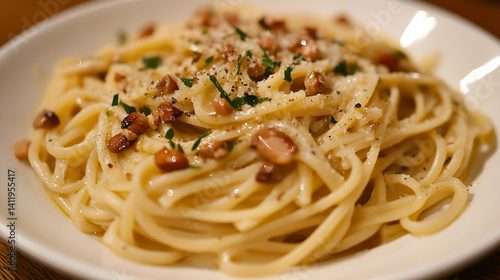 pasta, food, creamy, sauce, dish, cookery, culinary, appetising, delicious, dinner, lunch, meal, receipe, cooking, gastronomy, food photography, eatery, menu, bowl, white, brown, herb, spice, closeup, tasty, epicure, high-quality, spaghetti, italian, plate, noodle, carbonara, tomatoes, cheese, basil, healthy, fresh, closeup, shrimp