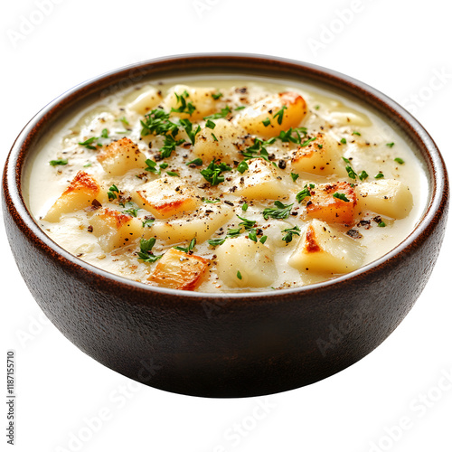 Creamy Potato Soup Bowl Close up Homemade Delicious Food Photography