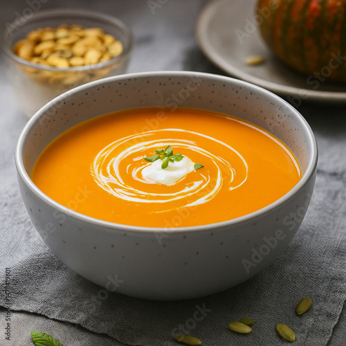 soup, pumpkin, creamy, orange, bowl, herb, cream, swirl, hot, meal, comfort, autumn, warm, delicious, vegetable, healthy, nourishment, dish, homemade, lunch, dinner, cosy, seasonal, plate, food, favor, served, receipe, kitchen, soft, classic, natural, epicure, light, texture, vegan, vegetarian, clean, beautiful, appetence, fresh, fall, closeup, organic, style, background, table