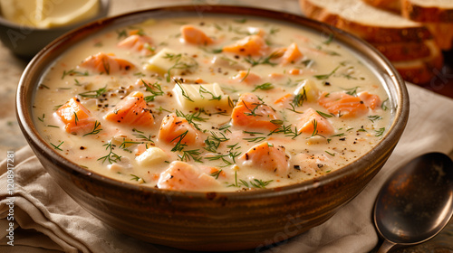 creamy, potato, dill, soup, bowl, hearty, savoury, seafood, homemade, delicious, epicure, comforting, rich, warm, dinner, meal, rustic, aromatic, fresh, traditional, healthy, filling, classic, wholesome, herb, satisfying, winter, lunch, elegant, indulgent, cosy, alimentary, culinary, flavorful, comfort food