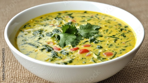 Creamy Spinach Soup with Fresh Herbs and Colorful Vegetables