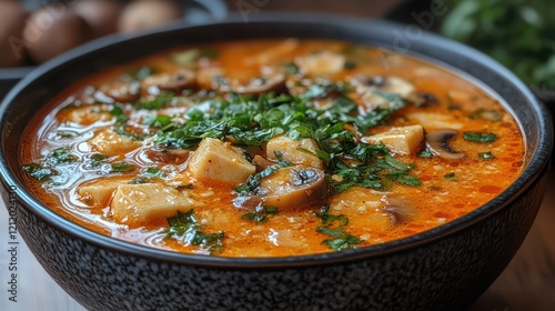 soup, tofu, mushroom, creamy, bowl, food, receipe, delicious, comfort, dinner, lunch, vegan, vegetarian, healthy, tasty, culinary, cookery, meal, dish, plate, eat, cooking, kitchen, ingredient, herb, parsley, spicey, favor, aroma, appetising, gastronomy, epicure