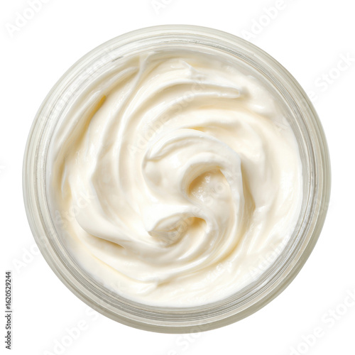 Creamy white cosmetic product swirl texture in clear container skincare beauty, Isolated On Png Transparent Background