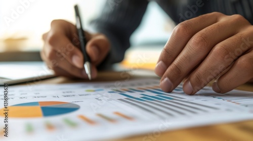 Create prompts for stock photos related to people analyzing tabs with graphs and statistics. Isolated on background with - characters and ending with