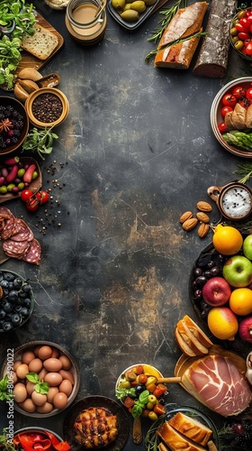 Create a banner filled with food elements from end to end Incorporate a central blank area for personalized content Ensure the overall aesthetic is sophisticated and contemporary
