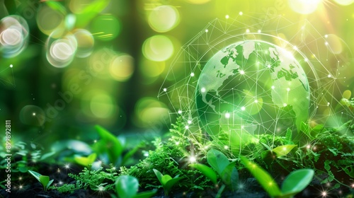 Create a realistic photo depicting a sustainable, environmentally friendly goal development strategy for green business, highlighting global net zero carbon neutral targets and emission reduction.