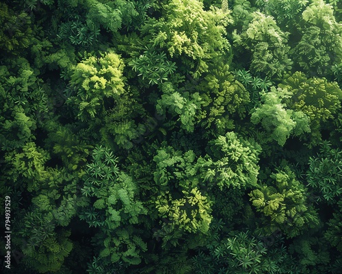 Create an abstract representation of a lush, green forest teeming with biodiversity