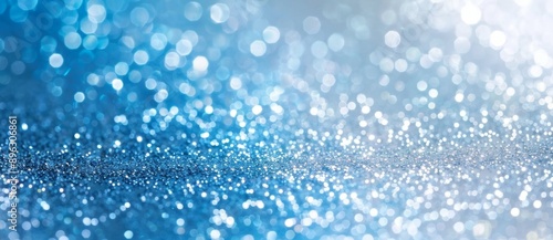 Creating an enchanting, magical atmosphere with abstract blue glitter and festive bokeh lights, perfect for celebrations and holidays like christmas and new year