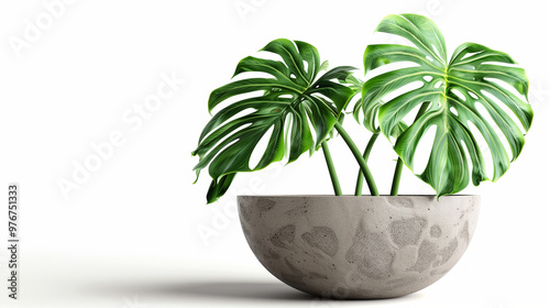 Creation failed Monstera plant in pot isolated on white background. Minimal tropical leaves houseplant home decor. 3d rendering.