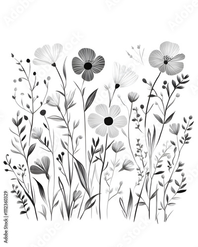 Creative 2D Doodle Floral Illustrations Text Space for Versatile Designs, Greeting Cards, Invitations