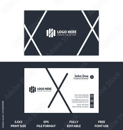 Creative and Corporate business card, white and black color business card template, ready to print modern business card vector template