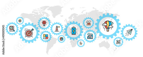 Creative banner with colored web icons. Innovation, startup, artwork, project, idea concept banner background.