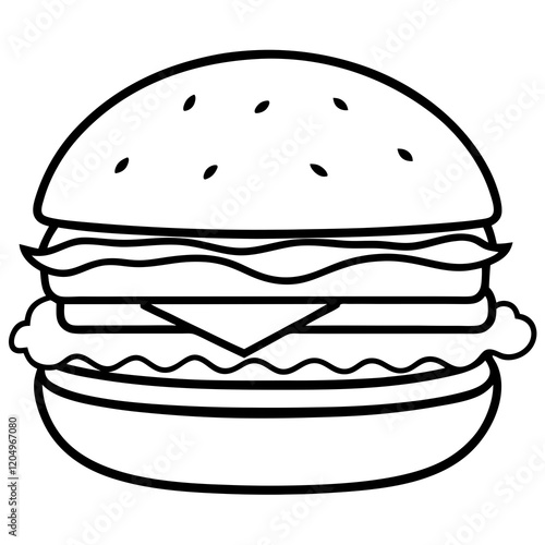 hamburger, burger, food, cheeseburger, sandwich, bun, beef, cheese, bread, meat, lettuce, tomatoes, isolated, fast, meal, fast food, fat, white, lunch, snack, sesame, unhealthy, dinner, illustration, onion, creativity, cut-out, horizontal, menu, no people, outline, design element, cartoon, grilled, salad, cute, cutlet