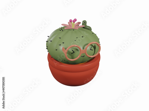 Creative concept of cactus with glasses in flower pot on white background. 3d illustration.
