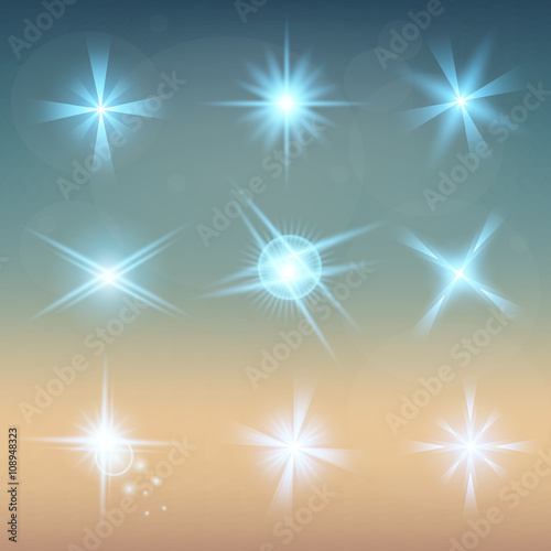Creative concept Vector set of glow light effect stars bursts with sparkles isolated on black background. For illustration template art design, banner for Christmas celebrate, magic flash energy ray