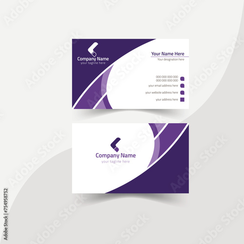 Creative corporate modern business card clean double-side personal with purple color & black color design template for personal user horizontal layout print ready.