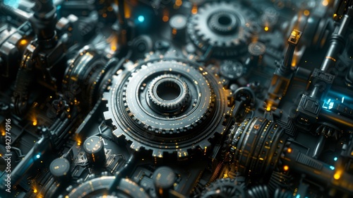 Creative depiction of gears in a high-tech environment